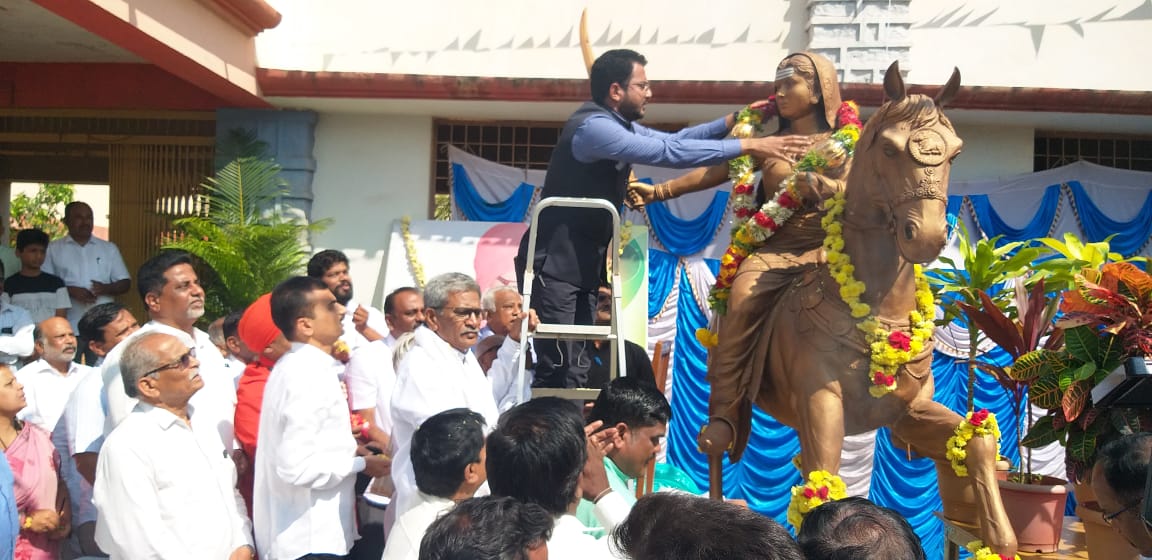 ಬಾಲಕಿ ವೇದಾಶ್ರೀ ಕಿತ್ತೂರು ರಾಣಿ ಚನ್ನಮ್ಮನ ವೇಷಧರಿಸಿ ಮೆರವಣಿಗೆಯಲ್ಲಿ ಹೆಜ್ಜೆ ಹಾಕಿದ ಕುದುರೆ ಸವಾರಿ ನೋಟ ಎಲ್ಲರ ಗಮನ ಸೆಳೆಯಿತು.