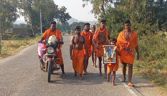 ಕಾಲ್ನಡಿಗೆಯೊಂದಿಗೆ ಬೆಟ್ಟದತ್ತ ಹೊರಟ ಮಾಲಾಧಾರಿಗಳು