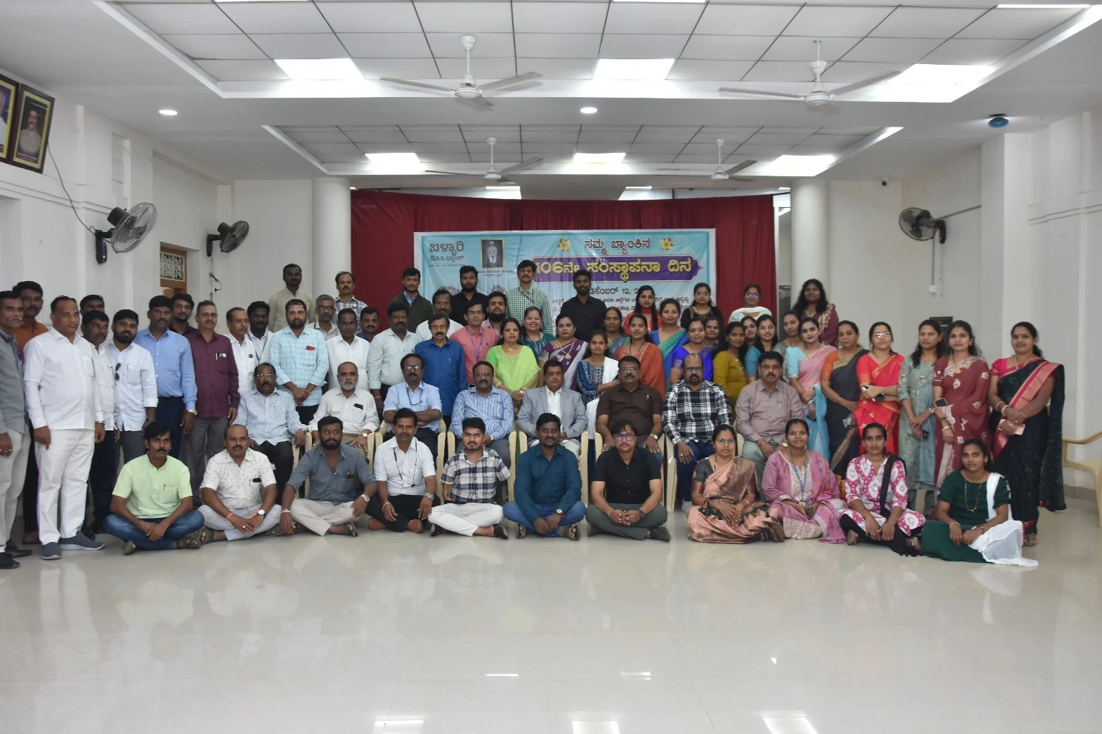 ಬಳ್ಳಾರಿ ಡಿಸಿಸಿ (ಜಿಲ್ಲಾ ಕೇಂದ್ರ ಸಹಕಾರ ಬ್ಯಾಂಕ್) ಬ್ಯಾಂಕ್ನ 106ನೇ ಸಂಸ್ಥಾಪನಾ ದಿನಾಚರಣೆಯನ್ನು ನಗರದ ಕೇಂದ್ರ ಕಚೇರಿಯಲ್ಲಿ ಶುಕ್ರವಾರ ಸಂಭ್ರಮದಿAದ ಆಚರಿಸಲಾಯಿತು.